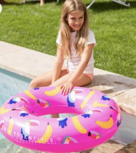 Deze opvallende zwemring heeft felroze design met speelse toekans en bananen, waardoor het een aantrekkelijke keuze is voor gezinnen en kinderen.