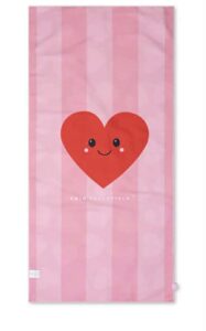Deze handdoek met een opvallende rode hartenprint is speciaal ontworpen.